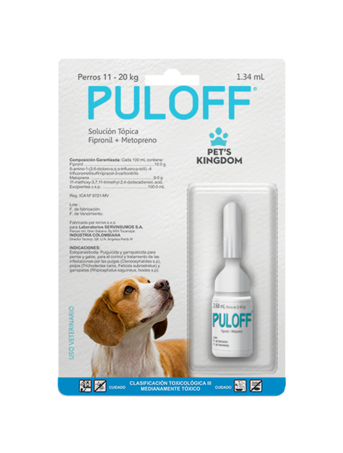 PULOFF es un antiparasitario externo de amplio espectro (Pulgas, Garrapatas y Piojos) Ver producto...